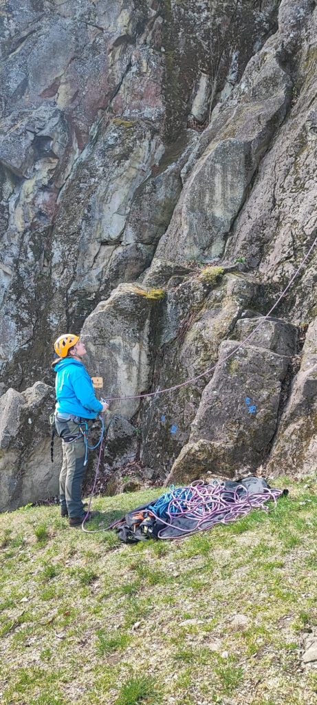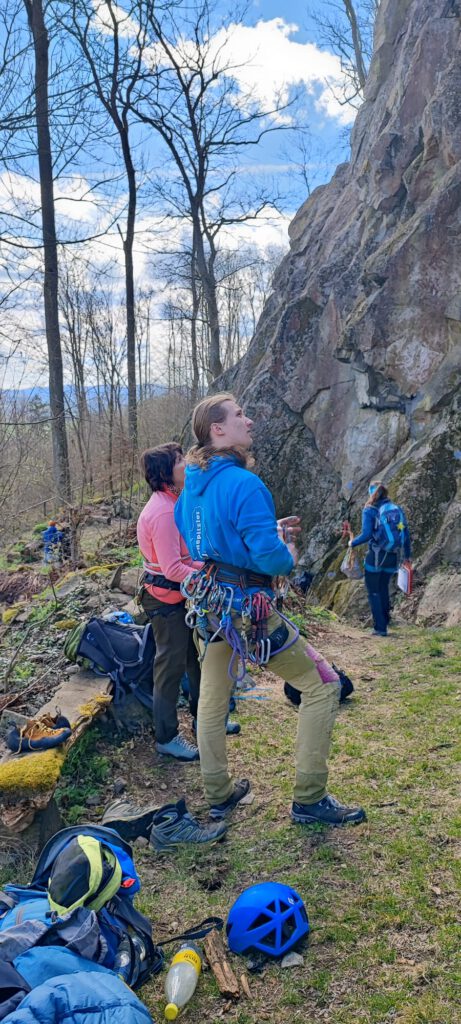 Am 6. April ging’s für uns raus an den Fels – das Wetter war okay, aber ganz schön frisch. Acht Kletterer waren am Start und hatten trotzdem richtig Lust auf Bewegung und Felskontakt. Kalte Finger hin oder her, geklettert wurde natürlich trotzdem.
